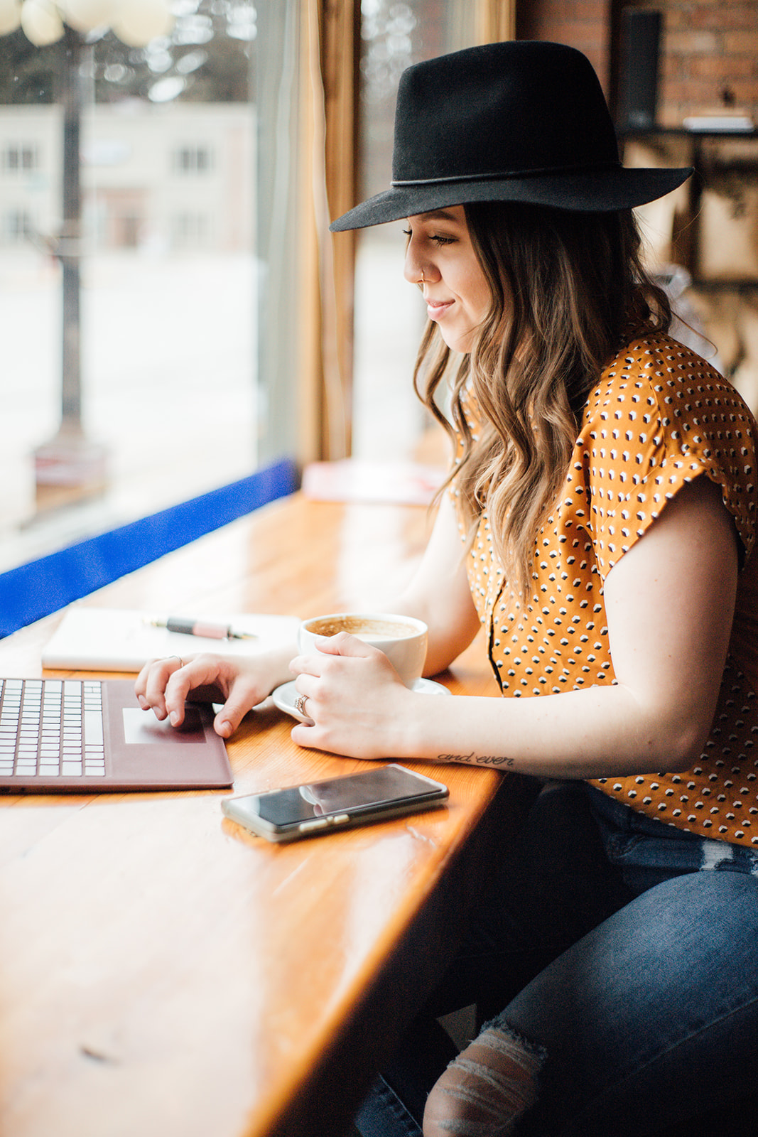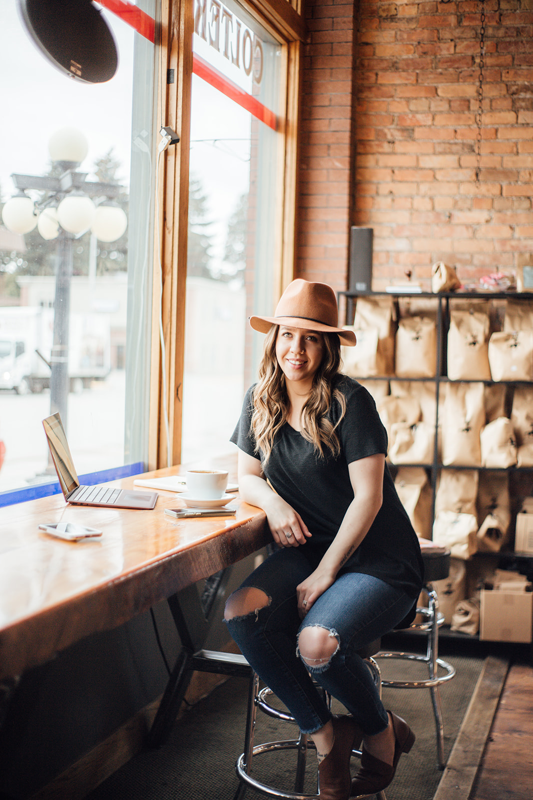 When Meggan of Meggan Jessat Photography suggested we do a photo shoot, my first thought was “Ohhhhh! Coffee Shop!”. I’ve always wanted to do a photo shoot in a dimly lit coffee shop with great natural light and exposed brick. Que the little gem downtown Kalispell we call Colter Coffee.