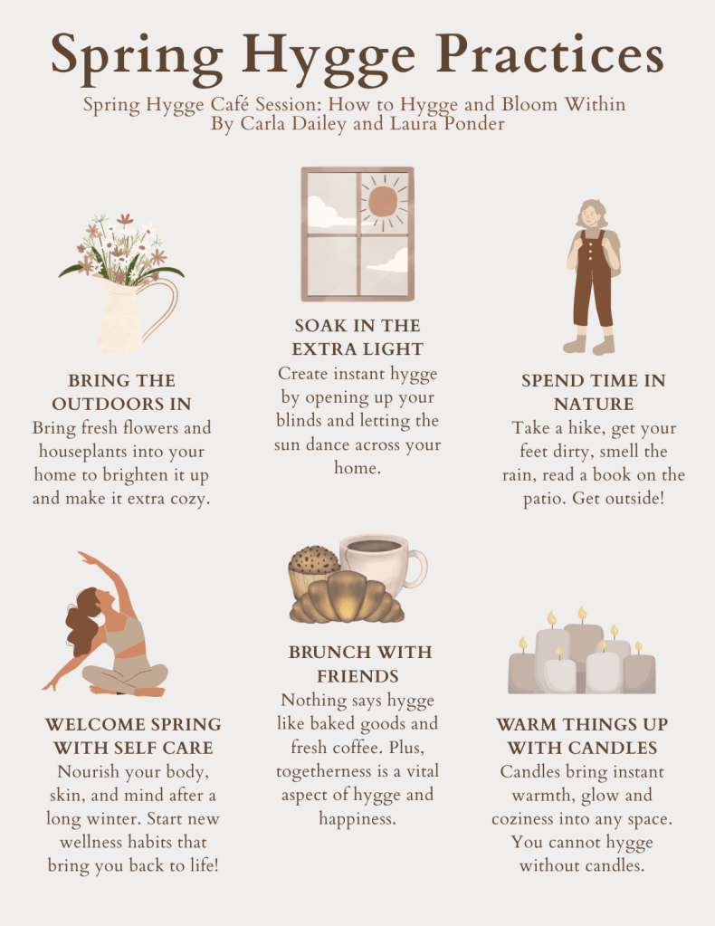 Here’s a quick rundown of the Spring Hygge Café: How to Hygge and Bloom Within. What you missed: